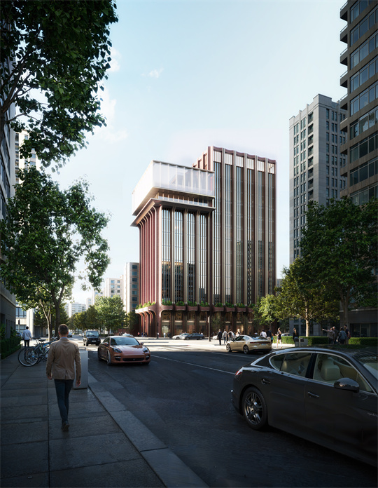 在建设标准上,项目以 50 年建筑设计年限为基准,融合框架、框架 - 剪力墙与钢结构等多种现代结构形式,按 7 度抗震设防标准筑牢品质根基。作为一座定位高端的酒店建筑,项目采用典雅现代的设计风格,外立面以暖色金属、石材及灰白玻璃构建竖向线条为主的视觉基调,局部融入弧形元素;底部打造立体绿化景观,东侧顶部外扩形成中间层露台与玻璃盒子结构,通过虚实结合的设计手法,营造出层次丰富的建筑美感。